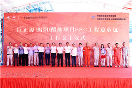 9月10日,全球單套產能最大的醋酸項目——巨正源(揭陽)新材料基地一階段工程150萬噸/年醋酸項目順利中交!這標志著醋酸項目正式由全面建設階段轉入投料試車攻堅階段,為后續全面投產、運營奠定了堅實基礎。